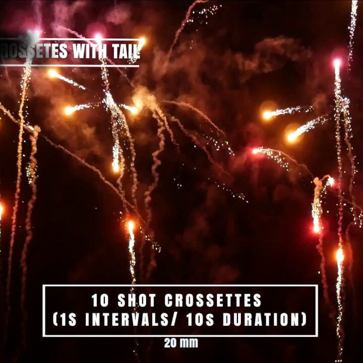 Producto anterior Siguiente producto 20mm Crossettes / Batería multidisparo de 20mm Caliber: 20mm Duración: 1 sec. interval CE Marking: Ex number: Debris Free: Hazard: 1.4G Packing: 10/1 Categorías: Crossette / Crosetes, Multi Shot / Disparo múltiple Descripción Valoraciones (0) Descripción Description of effect: Available in all colours / Descripción del efecto: Disponible en todos los colores Varigated crossetes no tail Varigated crossetes with tail Brocade / brocade Craker / cracker Espiga blanca /white spangle Valoraciones No hay valoraciones aún. Sé el primero en valorar “20mm Crossettes / Batería multidisparo de 20mm” Cancelar la respuestaTu dirección de correo electrónico no será publicada. Los campos obligatorios están marcados con *Tu puntuación * Puntuar… Perfecto Bueno Normal No está tan mal Muy pobre Tu valoración *Nombre * Correo electrónico * Guarda mi nombre, correo electrónico y web en este navegador para la próxima vez que comente. Productos relacionados Vista rápida Vista rápida 30mm Crossettes – Ricasa Fireworks / Batería multidisparo de 30mm Vista rápida Vista rápida 48mm Effects – Ricasa Fireworks / Batería multidisparo Efectos de 48mm Vista rápida Vista rápida 30mm Comet – Ricasa Fireworks / Batería multidisparo Cometa de 30mm
